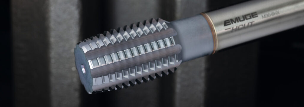 EMUGE´s HCut tool geometry is the suitable tool programme for thread cutting in high-strength or hardened steels, which enables process-reliable thread production with specially adapted flute shape and suitable rake angles and clearance angles. EMUGE offers the HCut taps in the cutting materials HSSE-PM and carbide in order to optimally machine different hardness properties of materials. EMUGE recommends using the HSSE-PM tap version for material hardness of 44 to 55 HRC, as is the case with the SSAB steels Toolox 44 or Armox 500T. The carbide version is designed for use at hardness of 55 to 63 HRC, which can be found, for example, in the SSAB steels Strenx 1300, Hardox 500, 600 or Extreme.