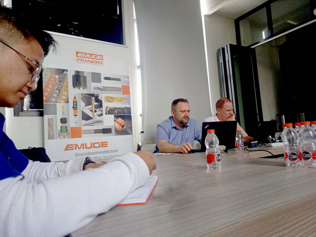 PT. LASTIKA PRIMA TEKNIK – pada hari senin tanggal 13 maret 2023 TEAM sales PT. LASTIKA PRIMA TEKNIK sedang mengikuti training EMUGE – FRANKEN. tujuan kami mengikuti training EMUGE – FRENKEN mempelajari dan mengenal produk dari EMUGE – FRANKEN. EMUGE-FRANKEN telah menjadi salah satu produsen perkakas terkemuka di dunia untuk threading, pengeboran, milling, pengujian, dan clamping selama lebih dari 100 tahun. EMUGE – FRANKEN adalah penyedia sistem untuk alat pemotong dalam desain standar atau alat khusus yang disesuaikan untuk proses pembuatan yang berbeda. Alat threading, pengeboran, dan milling EMUGE-FRANKEN memungkinkan pemesinan yang sangat efisien dalam produksi seri dan menampilkan masa pakai alat yang mengesankan, bahkan saat mengerjakan material yang menantang. Kisaran alat pemotong, dilengkapi dengan alat untuk menjepit benda kerja dan alat, memenuhi tuntutan kualitas dan presisi tertinggi. Untuk hasil pemesinan yang optimal, EMUGE – FRANKEN menyediakan alat dalam versi karbida padat (VHM) dan baja kecepatan tinggi (HSS). Penajaman ulang dan pelapisan ulang masing-masing merupakan komponen penting untuk penggunaan ekonomis. salah satunya seperti
